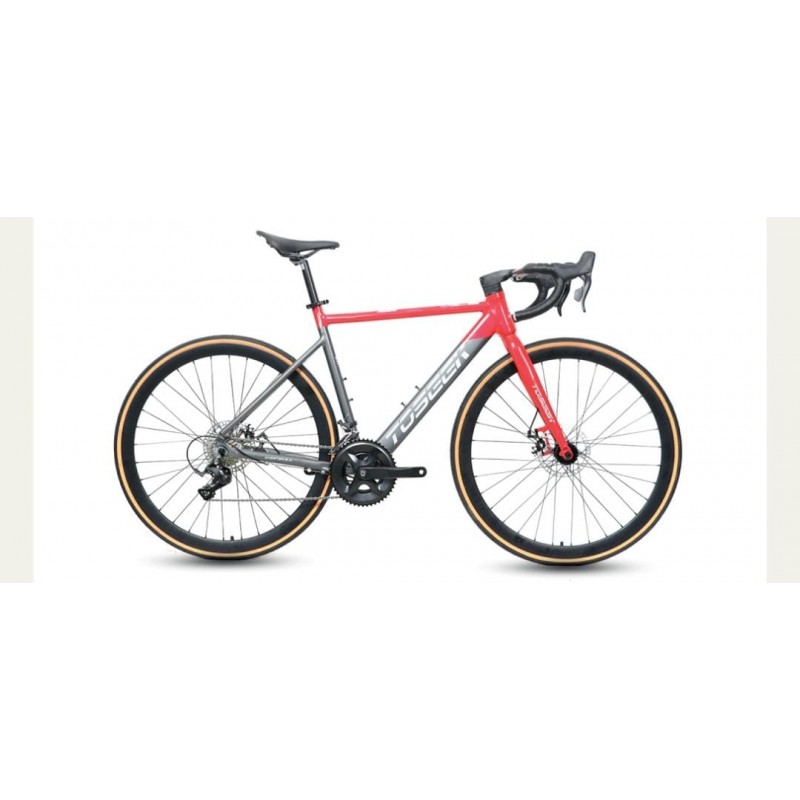 Quadro e Garfo: Alumínio AL-6061 T6 com soldas suaves e cabeamento interno. O garfo é rígido, também em liga de alumínio. Transmissão: Equipada com o grupo de 2x8 velocidades LTWOO R3 (shifters, câmbio dianteiro e traseiro). Freios: Freios a disco mecânicos (marca Baishun ou similar). Rodas e Pneus: Aros de alumínio de parede dupla 700C com pneus 700*25C (frequentemente de cor "tan wall", com a lateral bege). Componentes: Inclui guidão (dropbar) integrado de alumínio, canote de selim de alumínio 27.2mm e pedivela de alumínio.